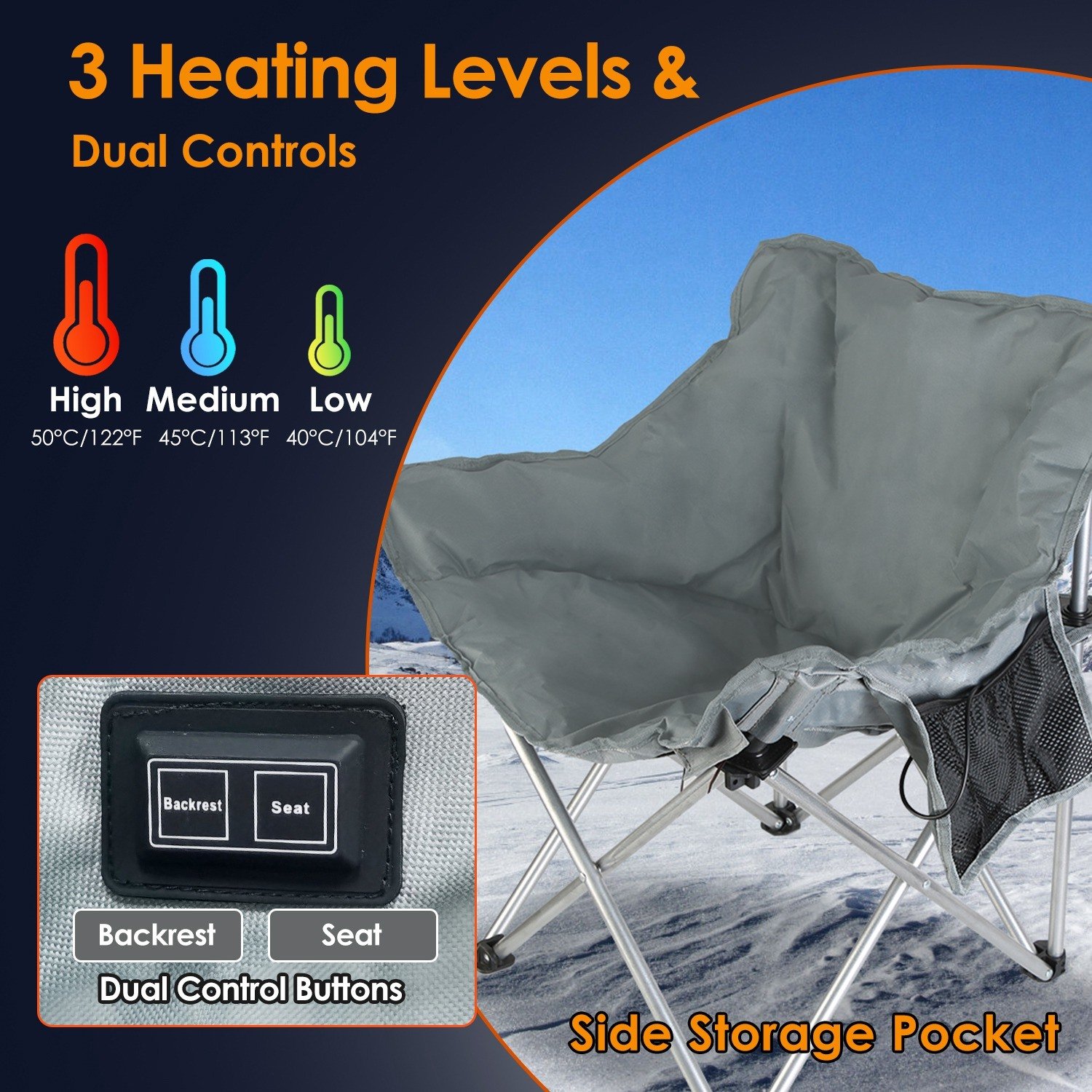 Heated Camping Chair For Adult Outdoor Activities Portable Folding Heated Chair With 3 Adjustable Heat Levels Heating Backrest Cushion Support 264LBS Heated Camping Chair For Adult Outdoor Activities Portable Folding Heated Chair With 3 Adjustable Heat Levels Heating Backrest Cushion Support 264LBS Heated Camping Chair For Adult Outdoor Activities Portable Folding Heated Chair With 3 Adjustable Heat Levels Heating Backrest Cushion Support 264LBS